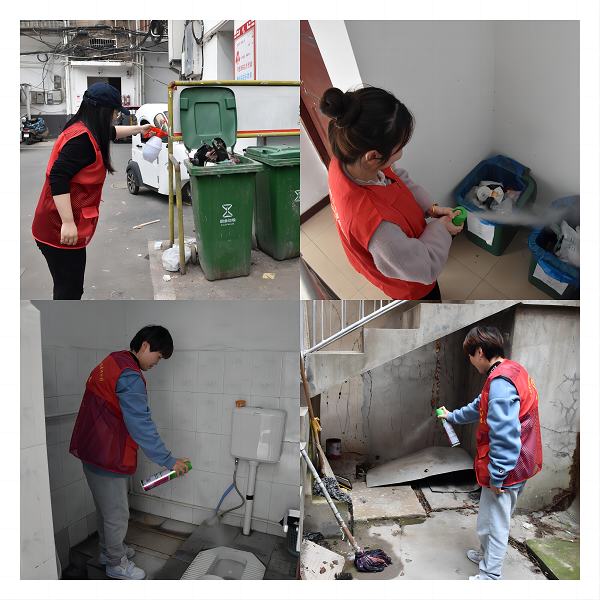 活動現(xiàn)場,志愿者們對公司及院內公共區(qū)域進行了全面排查和清理。他們利用消殺工具,對垃圾堆放點、綠化帶、樓梯口等病媒生物易滋生地進行了有針對性的藥物噴灑消殺,并做好消毒工作。除此之外,志愿者們還在下水道、停車棚等重點場所定點投放毒餌,進行殺滅,減少病媒滋生地。